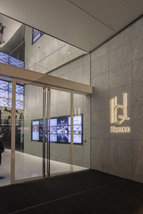 H QUEEN’s is a newly built 135m (443ft) high commercial complex in Central, Hong Kong where high-end shops decorated with gorgeous light and financial buildings are lined up. The entire facade consists of flat glass. Taking advantage of this architectural feature, instead of laying over dots, lines, or straps, we employed a series of smooth gradation lights to turn the whole building into a single shining box. The innocence and pureness emits a significant presence in such crowded surroundings. A pattern of white dots is printed on the glass and three-level linear lights are installed in each layer at the window frame of the building. This casts a beautiful light on indoor rooms and also contributes to the external lighting. Every hour on the hour, a feminine light animation appears to cover the building in a veil and draws the attention of passersby.