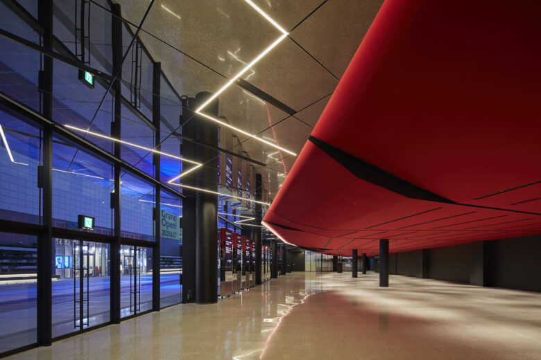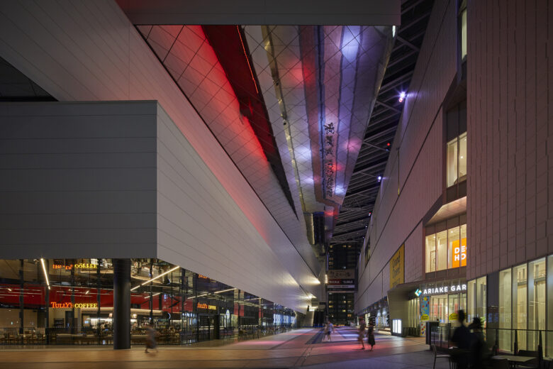 隣接する建物と共有する屋外ガレリアでは、ステージのような照明演出を行い、誰もが利用できる屋外劇場を創り出した。イベントホールのゲストだけでなく、近隣の建物を訪れた家族連れや子供たちをも喜ばせ、オリンピック前後も多くの人々で賑わう場となっている。