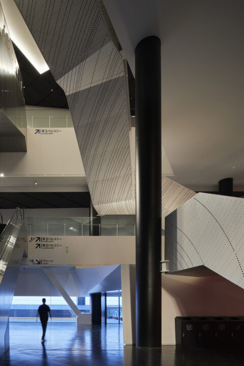 Tokyo Garden Theater is a theater-style events center with a capacity of 8,000 that was newly built ahead of the 2020 Olympics. The energy that radiates out from the people in the auditorium to the outside through the foyer was visualized through light. Interior lighting ensures the brightness and uniformity of light needed by guests with a balance between design and energy savings. Lighting effects in a breezeway connecting the building to adjacent structures create an open-air theater that all can enjoy. By entertaining not only theater guests, but all who visit the space, it has become a lively place.