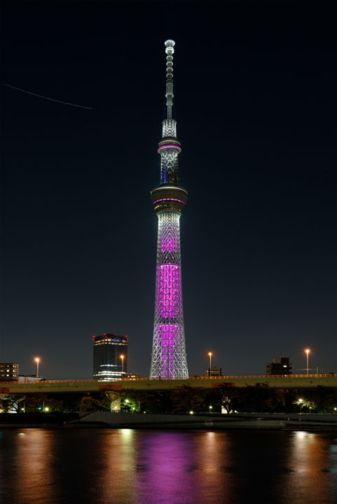 東京に新しく誕生した高さ634mの世界一高い自立式電波塔。その外観照明と展望エリアの照明を担当した。古くから受け継がれてきた東京の心である、“ 粋(清廉かつ豪快な心)” と” 雅(洗練美を追求する心)“ を、2つの光のスタイルで表現し、毎日交互に点灯している。