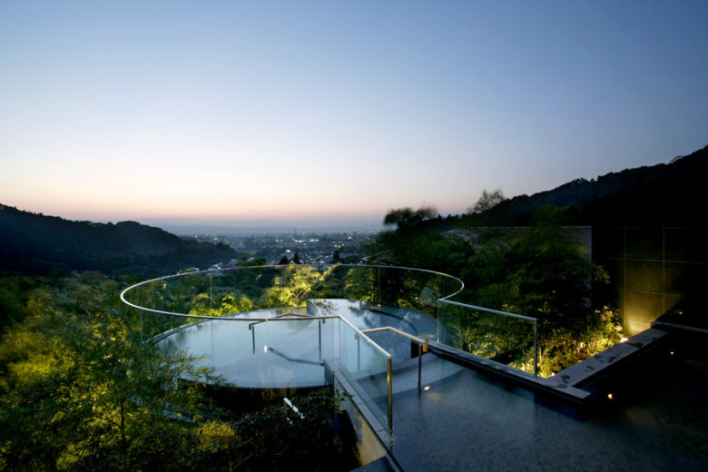 This was a renovation project for an old established Japanese style hotel, which is known as a “Ryokan” in Japanese. Guests can access the large observatory Onsen bath through a corridor filled with softly diff used light. With the delicate lighting plan, guests can enjoy a scene of the whole city behind the up-lit bamboos from the bath.