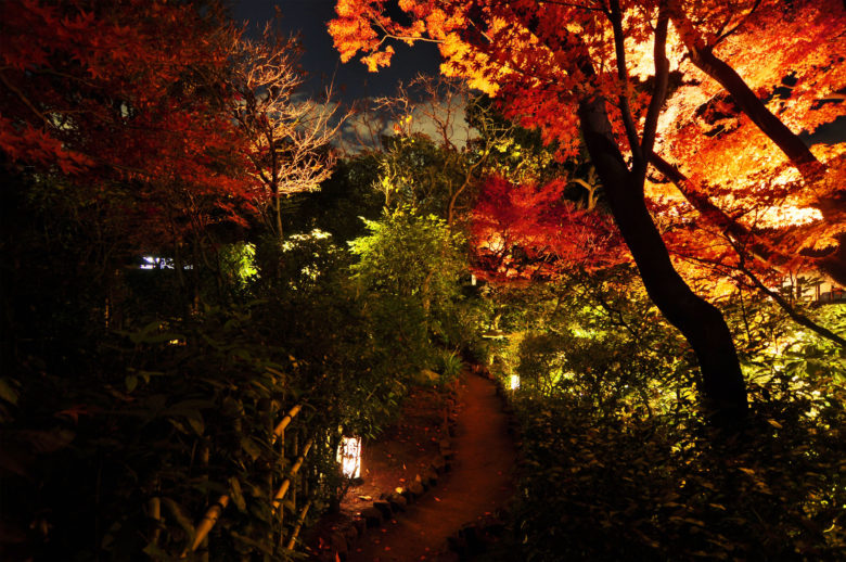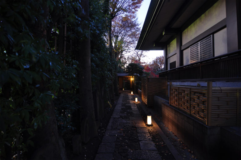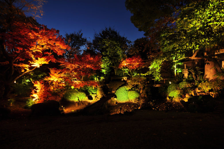 東京都台東区に位置する西蔵院での、日本庭園で行われた茶会の演出照明計画。寄り付きから茶室への動線には、古くから受け継がれてきた伝統を善しとする茶の道の精神を表現すべく、古のあかりとして行灯を計画した。また茶会最後のお庭に出て薄茶を頂く場面では、現代の技術が実現する華やかなライトアップを計画しコントラストを演出した。照らす樹木を限定し、その樹木に均一な光が広がるよう丁寧に 1 台ずつ調整を行い日本庭園らしい奥行き感のある風景をつくりだした。(一般非公開)