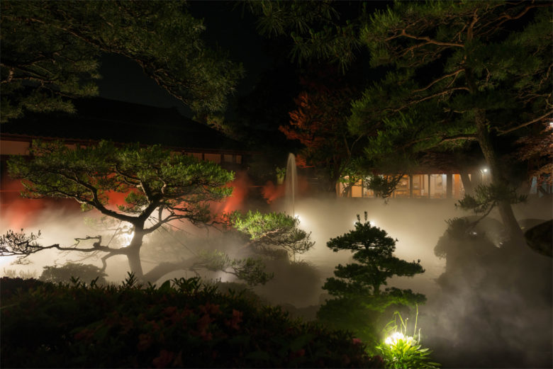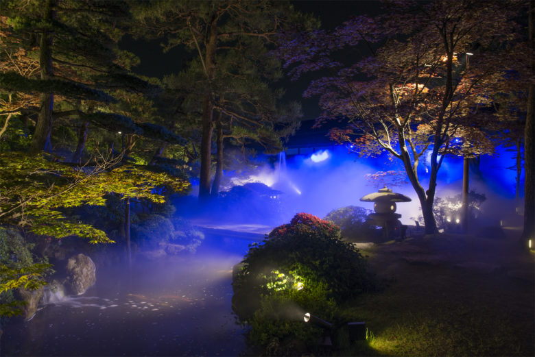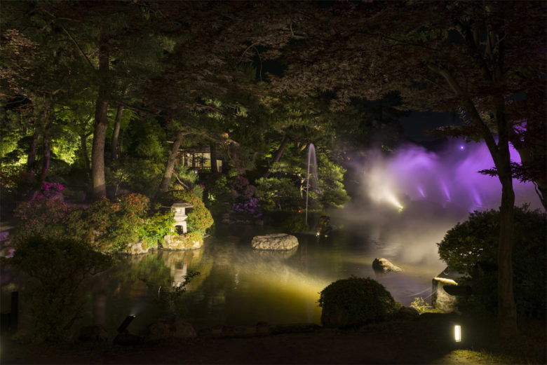 日本の美意識に基づいた柔らかな光と影の重ねを展開し、上品で奥行きのある立体的な風景をつくり出した。日本の伝統である四季を感じることができるよう、季節ごとに主役が変わり、年中楽しむことができるようになった。様々な視点場から見られることを想定した光の構成美を追求するだけではなく、庭園へ足を踏み入れるとセンサーが感知し、その周辺の光の量が変化する散策性の高いインタラクティブな計画としている。