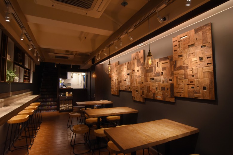 Facade Signage art breathed life into flowers by lighting and created expressions as monument of its cafe. In wooden based interior, it was achieved to create comfortable and homey feel space with scattered warm lighting.