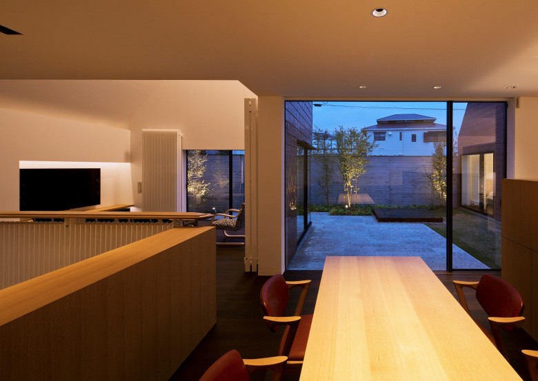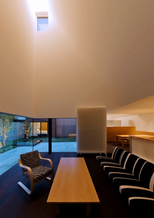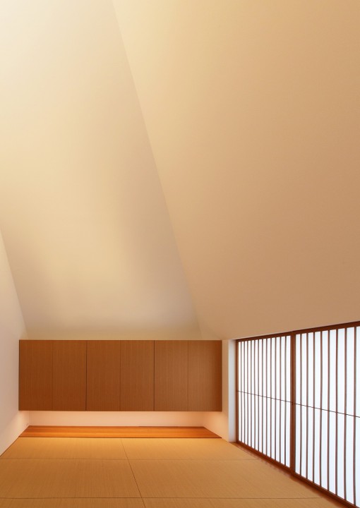 The main rooms such as living room and bed rooms are allocated inside of the roofs and the high sidelight are installed at the top of ceiling for taking in outside lights.