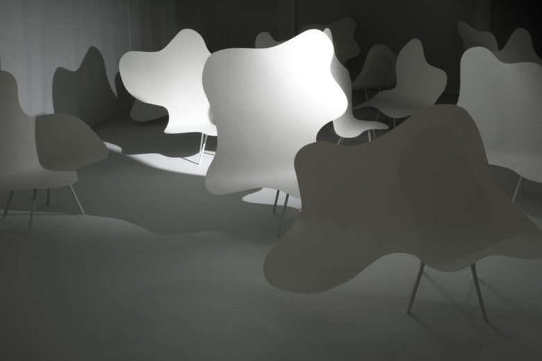 建築家・藤本壮介氏とのコラボレーションによる企画展。真っ白な空間の中に並ぶ雲をモチーフとした和紙の椅子に対し、照明の演出により「重ね」「切り取り」「透け」「繋がり」の4つの表情を与えた。この4つの光の表情をゆっくりと連続して再生することで、白い和紙の椅子の陰影と透け感が滑らかに変化し、あたかも雲が形を変えていくかのような移ろいが空間に立ち現れる。個別制御が可能なDALI制御のスポットライトを用いて実現されたこの展示により、新たな照明表現の可能性が示された。